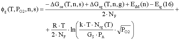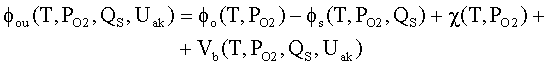 Vj(T,PO2,Uak) – понижающий потенциал на поверхности
