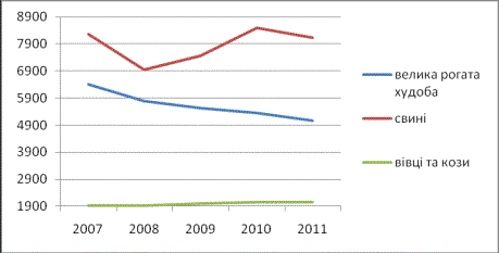 2011р. поголів’я великої рогатої худоби скоротилося на 48,5% (на 4780,6 тис.