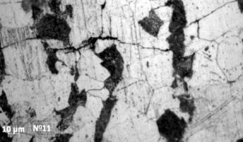 проявляется в виде белой нетравящейся полосе. Микротвердость в полосах существенно