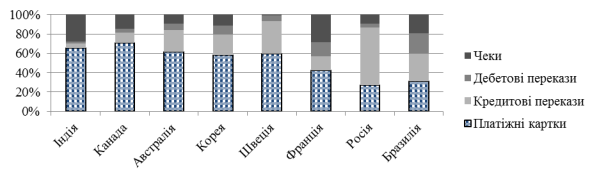 різниці між країнами щодо платіжних інструментів (рис.1), економічних та