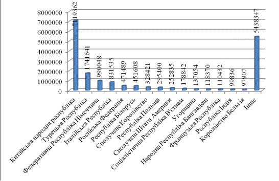 країн-лідерів у структурі імпорту товарів легкої промисловості в Україну за