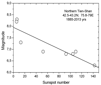 сейсмичности на Северном Тянь-Шане с вариациями солнечной активности, получен в