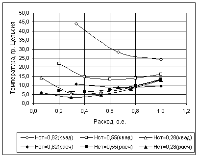Превышение температуры корпуса электродвигателя в зависимости от расхода
