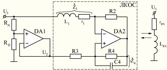показывающие, что в настоящей схеме индуктивность L1 с активным сопротивлением r1 преобразуются во входные