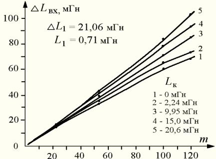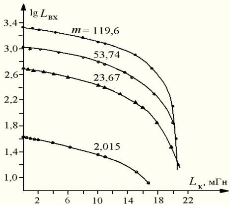 индуктивности L1 (при Lк = 0) входная индуктивность Lвх в зависимости от коэффициента