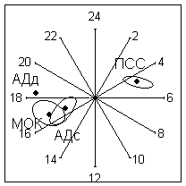 человека перераспределением акрофаз изучаемых показателей в течение суток.