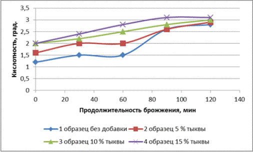 различной степенью дозировки тыквы в процессе брожения представлен рисунке 1.