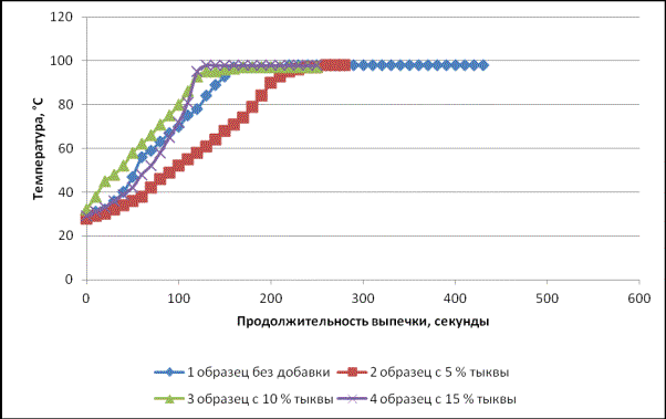 температуры образцов от продолжительности ЭК-выпечки представлен на рисунке 2. Анализ