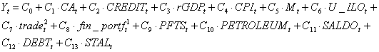 balance to GDP do affect the probability of crisis emergence. Coefficients C1, C9 are
