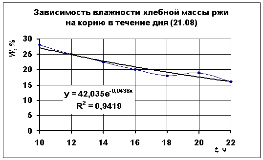 хлебной массы ржи на корню в течении дня (данные за 21 августа)