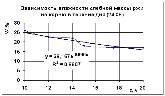 хлебной массы ржи на корню в течении дня (данные за 24 августа)