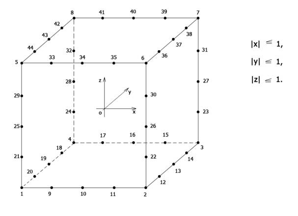 является его трёхмерный аналог Н44-hexahedron с 44-мя узлами,