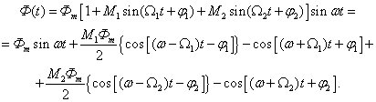 двохтональний AMП на виході волоконно-оптичного кабелю буде описуватись виразом