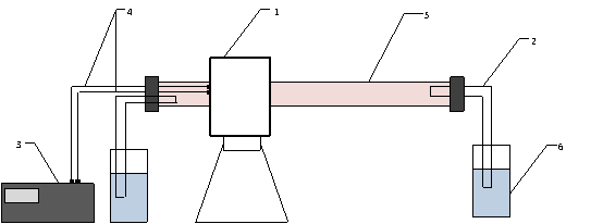 3.Термопара 4.Датчики температури 5.Колба з водою (2 штуки)