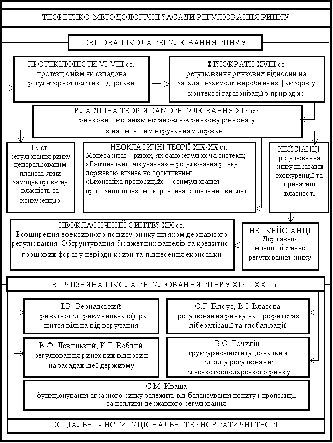 показують, що теоретико-методологічний розвиток регулювання ринкових відносин