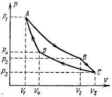 поршня — изобарическое сжатие (ветвь ВА — выталкивание отработанного газа).