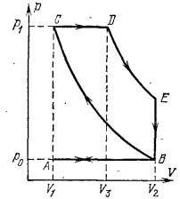 (ветвь DE). При обратном движении поршень выталкивает оставшийся пар при P0=const;