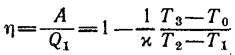среду количество теплоты Q2 =13,4 кДж. Найти к. п. д. η цикла.