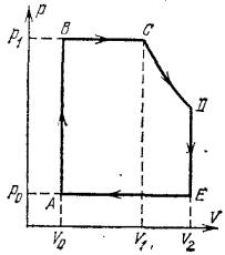 работу А этой машины, совершаемую за каждый цикл, если V0 = 0,5 л, V1