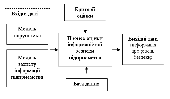 те, що основними елементами процесу оцінки інформаційної безпеки є модель та
