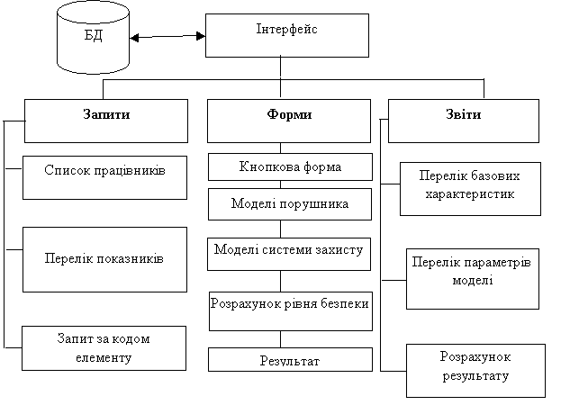 – інтерфейсу, який в свою чергу складається зі звітів, запитів та