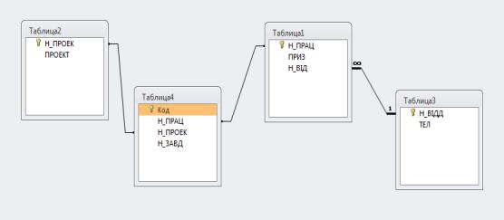На рис. 5 представлено схему розробленої БД з використанням пакету Access,