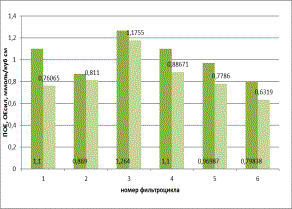 мкг/дм3). После второго пропуcка модельного раствора наблюдался рост показателей