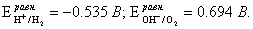 потенциалы водородного и кислородного электродов при данном значении pH