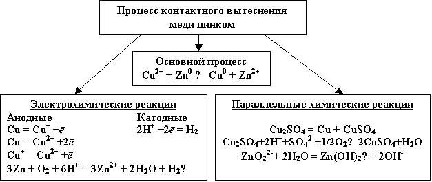 медно-цинковых растворов доказано протекание основной и параллельных реакций,