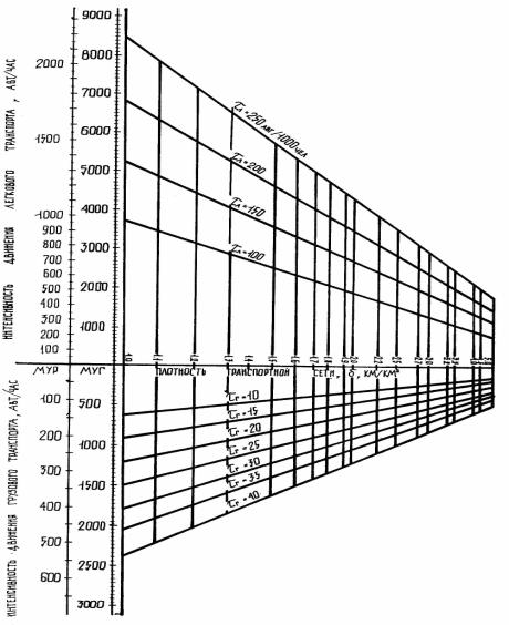 интенсивности движения (Nудму) в приведеных единицах в час «пик» |