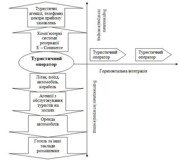 вертикальної інтеграції, в туризмі набула поширення горизонтальна інтеграція -
