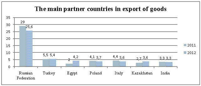 Diagram 2. The main partner countries in export of goods [3]