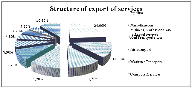 exports of services is still Russia left. It takes 5365.4 million USD (39.7% of