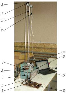 перетворювач NI-6008; 12 - тензопідсилювач "Топаз - 3-01"; 13 - ПЕОМ