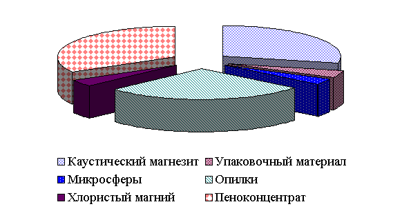 суммы затрат на сырье), каустический магнезит (более 28%) и опилки древесные (более