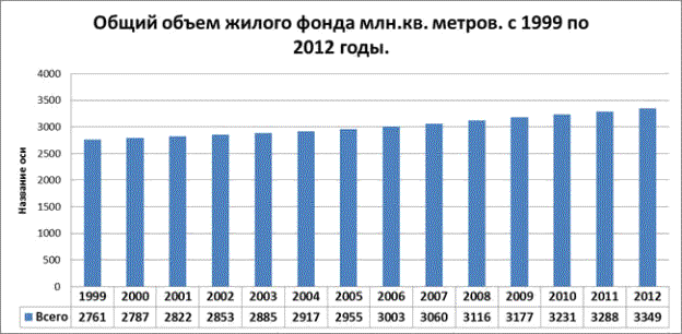 Начиная с 1999 года наблюдается рост объемов жилищного фонда, что