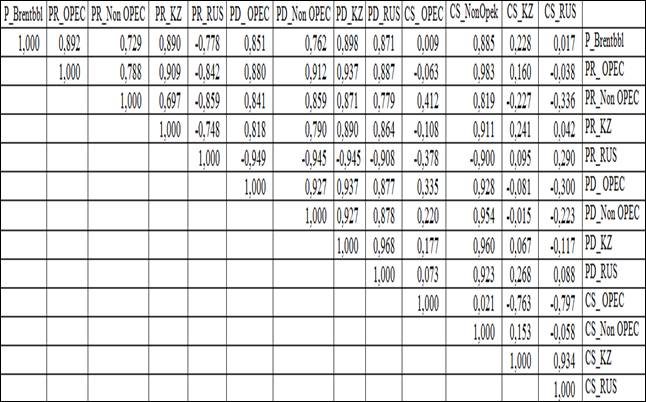 между отобранными факторами, тестируем переменные PR_KZ и PR_NonOPEC