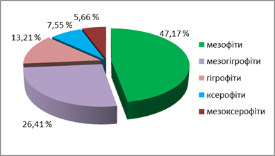 Екологічний аналіз за відношенням рослин до водного режиму вказує на домінування