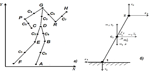 звеньев и узлов шагающего механизма человекоподобного робота, рисунок 1, методами