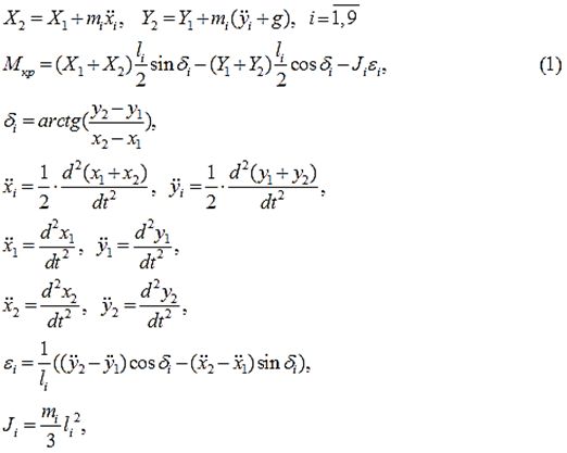 Расчет динамических моментов в узлах многозвенного роботизированного