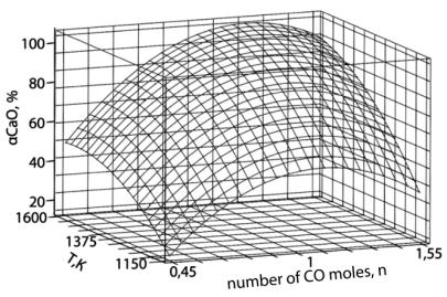 zone of reaction it is possible to reduce ÒmaxÑàÎ in the system CaSO4 – CO. So, at Ð = 0,01ÌÐà ÒmaxÑàÎ = 1400K, at