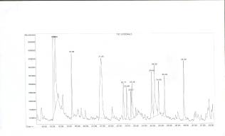 Теректы на хроматограмме идентифицируется 200 компонентов. Идентификация по мировой библиотеке химических соединений