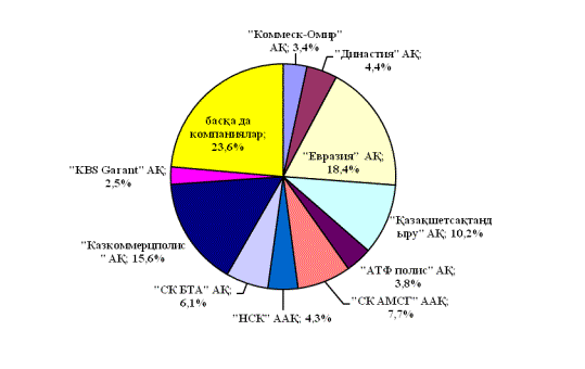 АҚ – 15,6%, «Қазақшетсақтандыру» АҚ үлесі