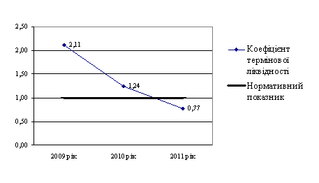 За даними рис. 2.4 коефіцієнт термінової ліквідності у 2009-2010 р.р.