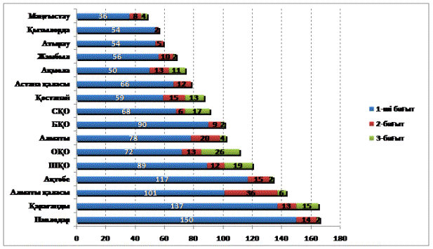 Мақұлданған жобалардың ең азы Қызылорда (56 жоба) және Маңғыстау (48 жоба) облыстарына келеді.