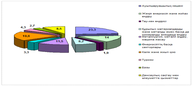 Қазіргі уақытта инвестицияларынжалпы сомасы49,01 млрд. теңге болатын 263 кәсіпорындар үшін құрылыс және өндірістік инфрақұрылымдықайта құружүзеге асырылуды, атап айтқанда, қайта құрылған жолдар – 48,5 шақырым, салынғанжолдар – 81,83 шақырым, темір жолдар – 16,5 шақырым, жүргізілген электр желілері – 364 шақырым, қайта құрылған электр желілері – 10,4 шақырым, жеткізілген суқұбырлары – 70,53 шақырым, кәріздер – 54,45 шақырым, газ құбырлары – 41,9 шақырым, жарықтандырулар – 23,4 шақырым, телефонданды-рулар – 35,49 шақырым, жылужелілер – 9,65 шақырым, орнатылған трансформа-торлық кіші станциялар– 26 бірлік.