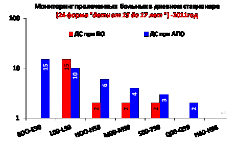 14 лет 20,5%. Мониторинг пролеченных случаев дневного стационара при АПО и при