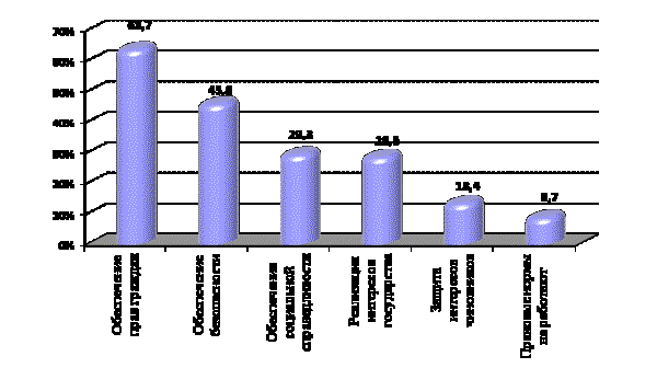 каждого человека (45,8%), социальной справедливости (29,3%). Таким образом, большинство