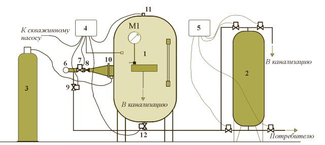 установки являются водо-воздушный бак и насос, определяющие режим работы