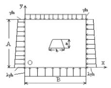 Рисунок 1 - Условия нагружения горного массива (а) и